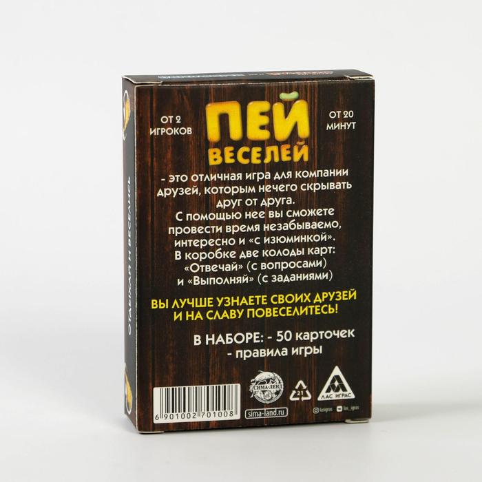Купить игра для компании "пей веселей" 50 карт от 180 руб. с доставкой до пункта выдачи в Павловске. Интернет магазин ДекаМаркет. Оплата при получении.